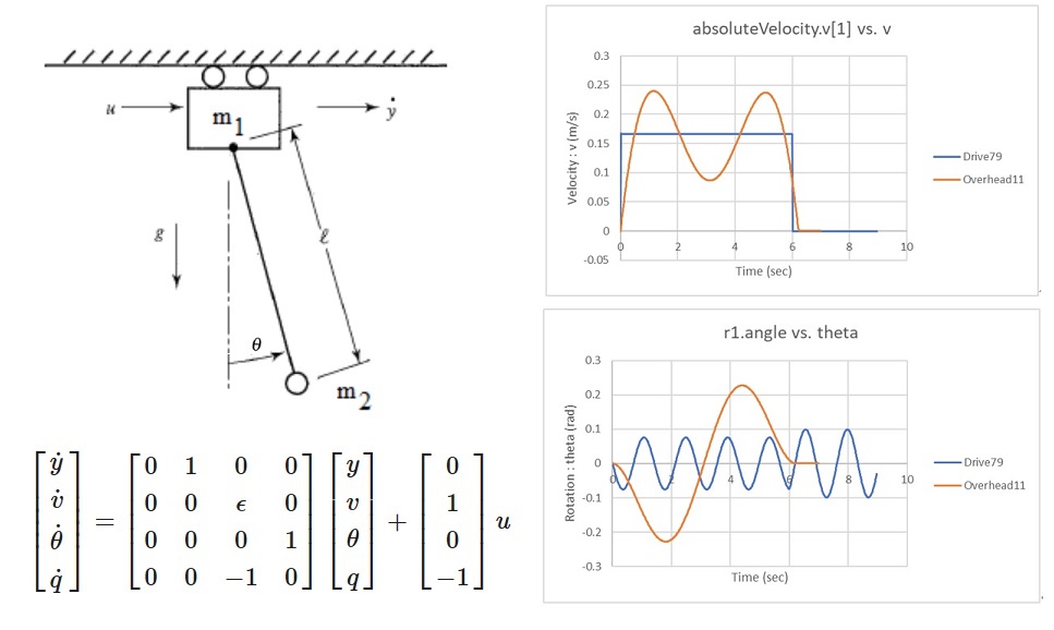 When a cart of overhead crane suddenly stops, the cargo would swing for a while.